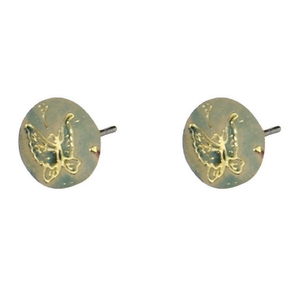 Be the first to review “Stud earring etched and enamelled flowers silver round gold butterfly”