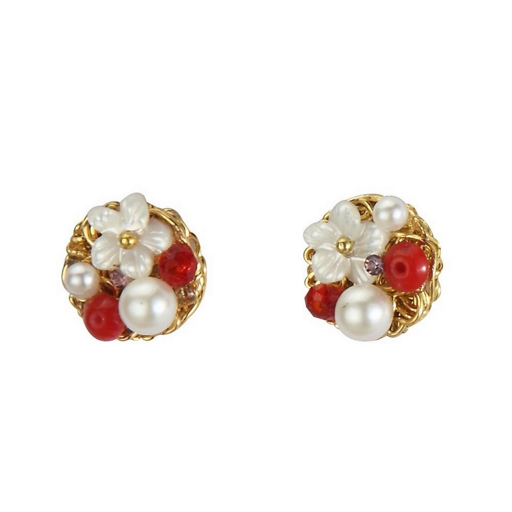 Stud Earring Vintage Flower Cluster Made With Shell & Pearl