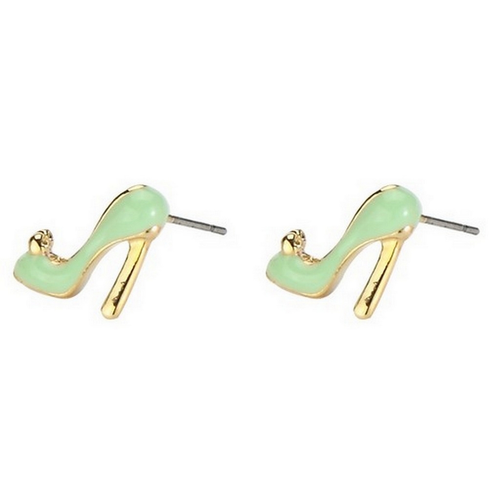 Stud earring high heel shoe green gold