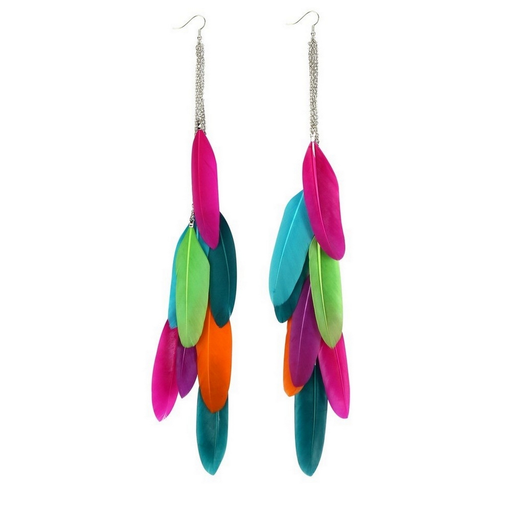 Drop Earring Multi Colour Made With Feather