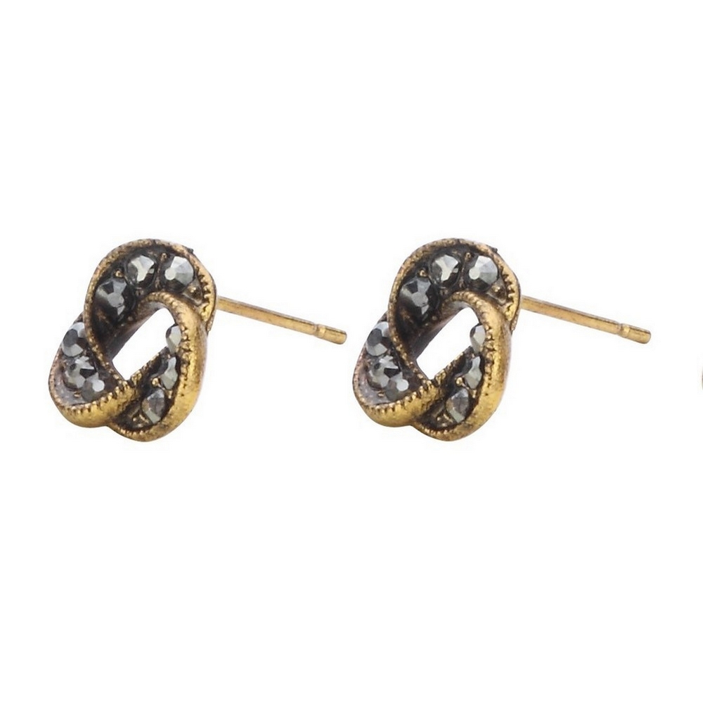 Stud earring crystal glass knots antique gold