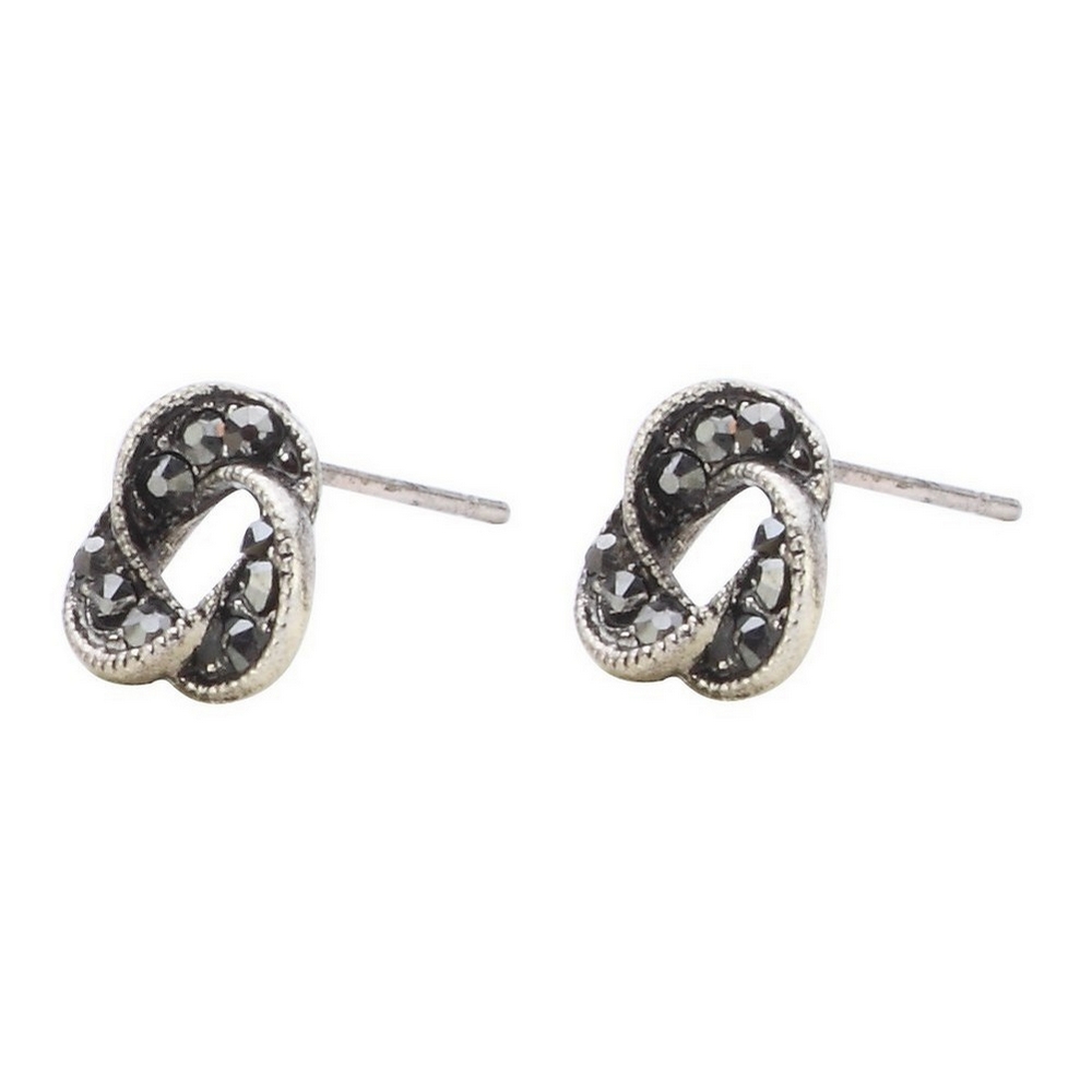 Stud earring crystal glass knots antique silver