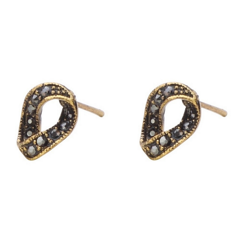 Be the first to review “Stud earring crystal glass inverted teardrop antique gold”