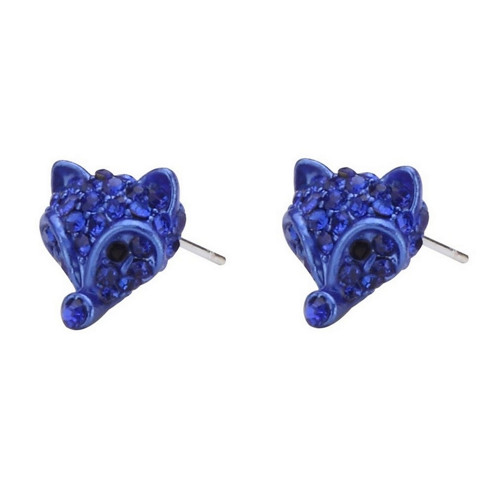 Stud earring crystal glass fox head 12mm dark blue