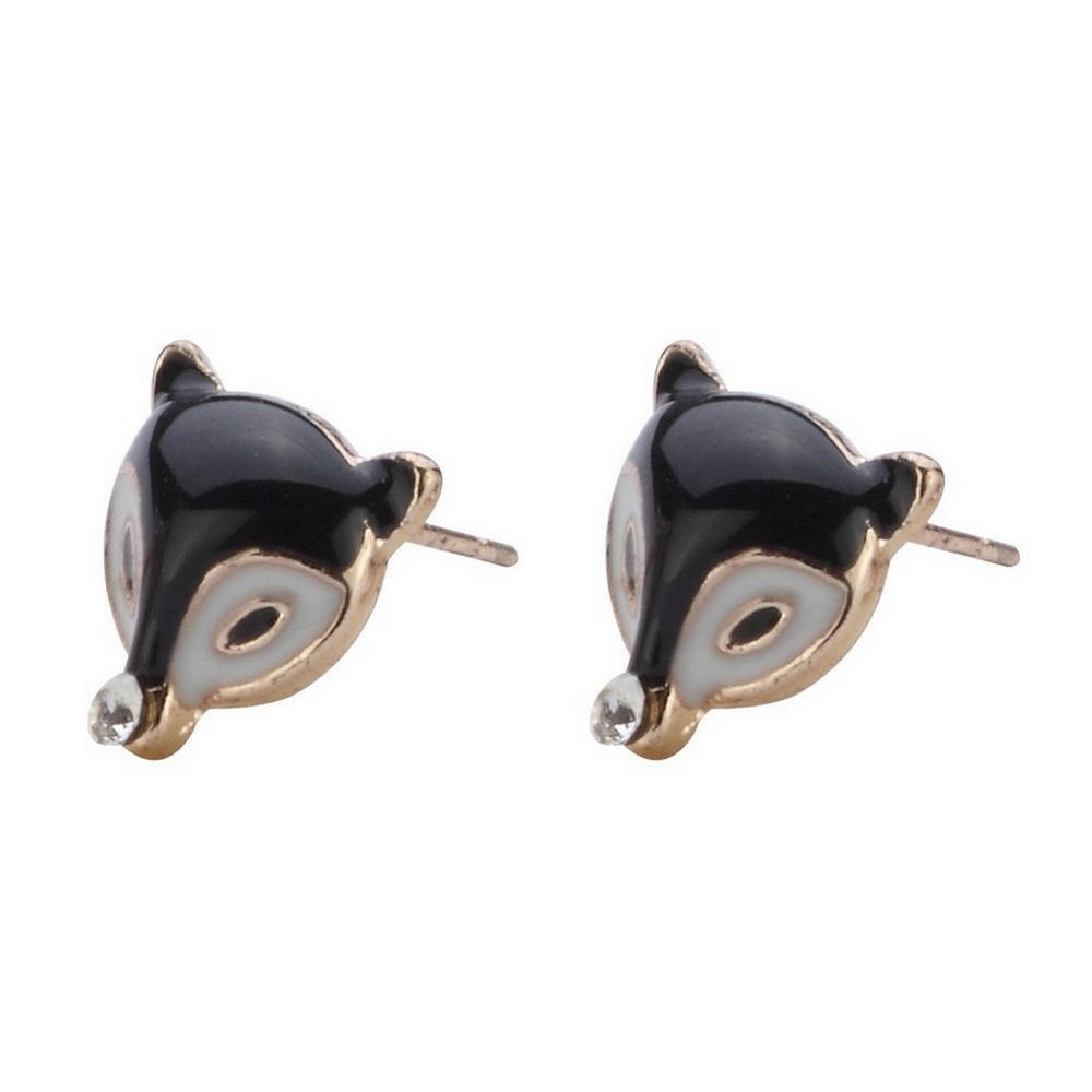 Stud Earring Fox Head Made With Enamel & Crystal Glass