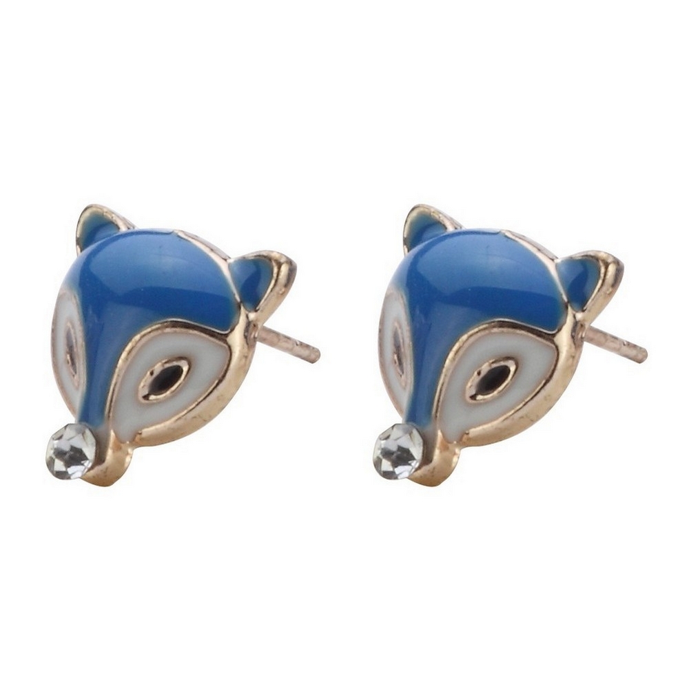 Stud Earring Fox Head Made With Enamel & Crystal Glass