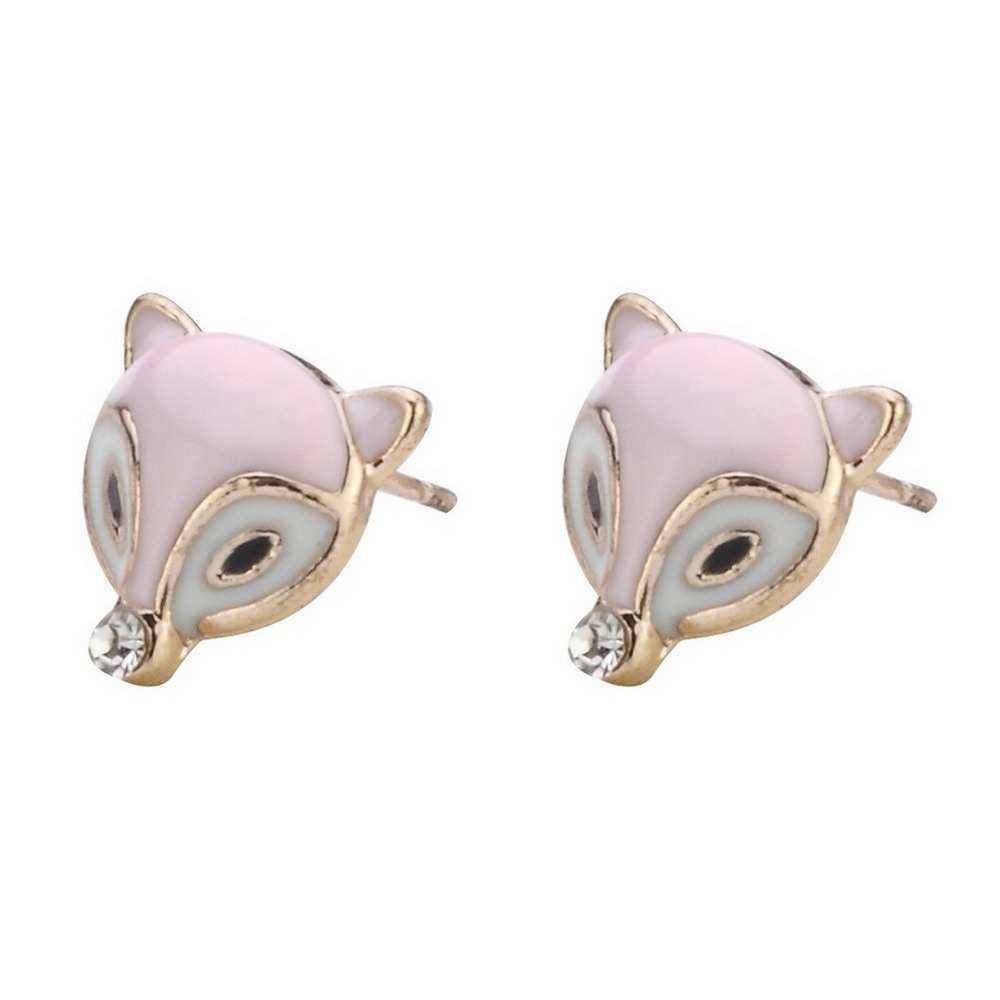 Stud Earring Fox Head Made With Enamel & Crystal Glass