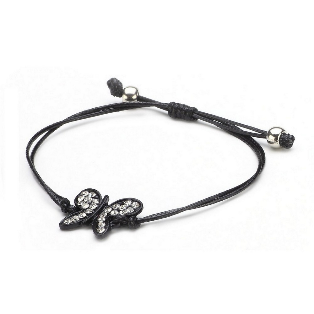 Bracelet Butterfly Adjustable Made With Crystal Glass & Cord