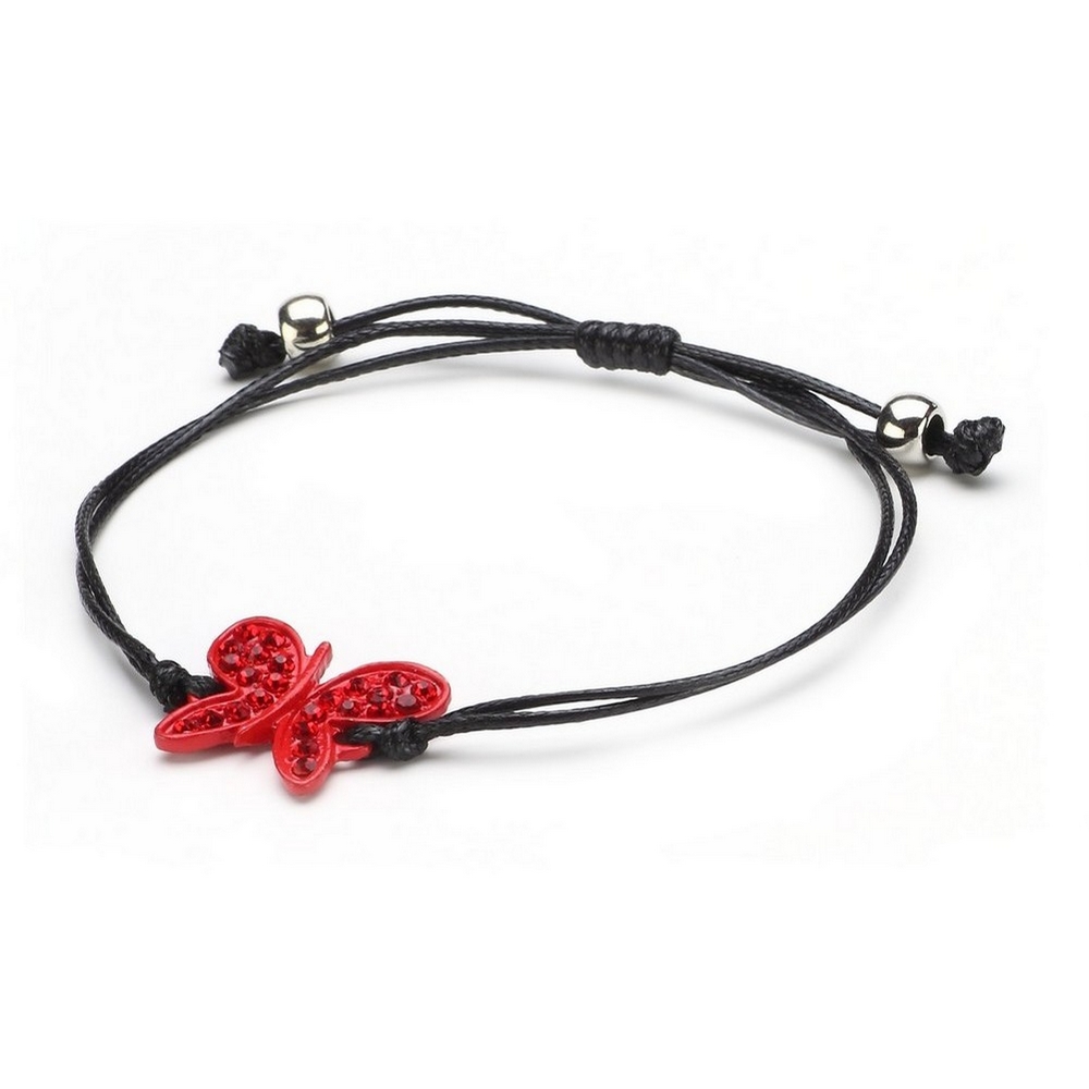 Bracelet Butterfly Adjustable Made With Crystal Glass & Cord