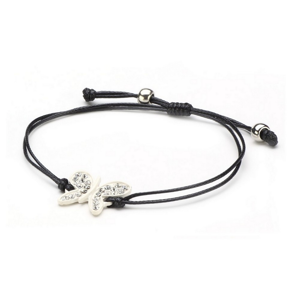 Bracelet Butterfly Adjustable Made With Crystal Glass & Cord