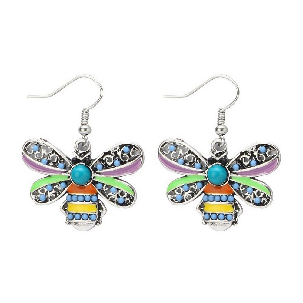 Drop Earring Bee Made With Enamel & Crystal Glass