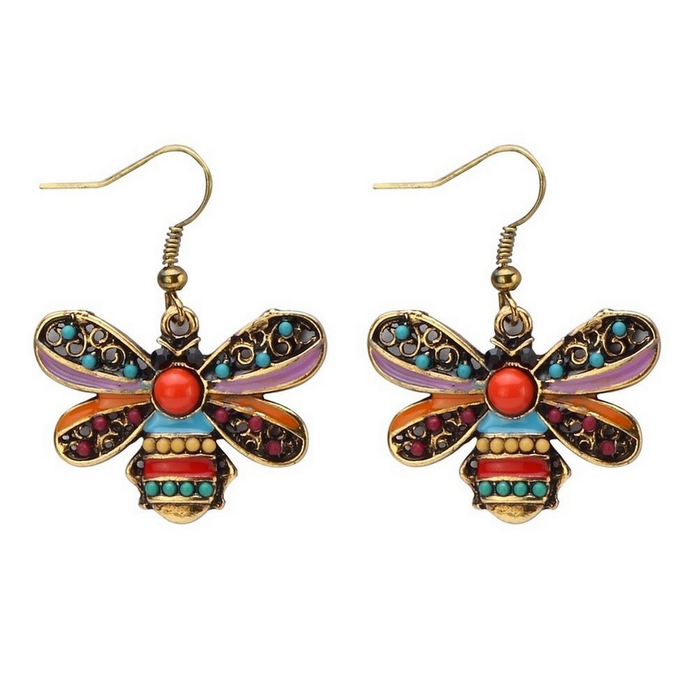 Drop Earring Bee Made With Enamel & Crystal Glass