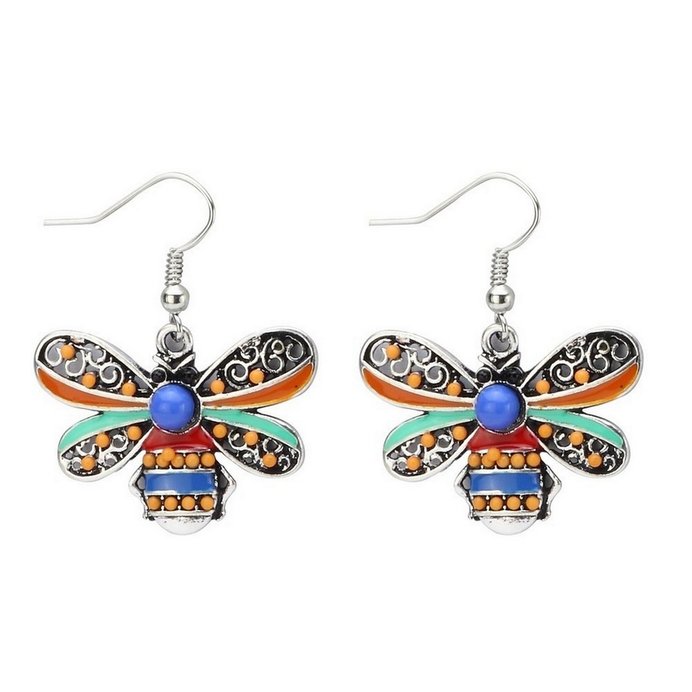 Drop Earring Bee Made With Enamel & Crystal Glass