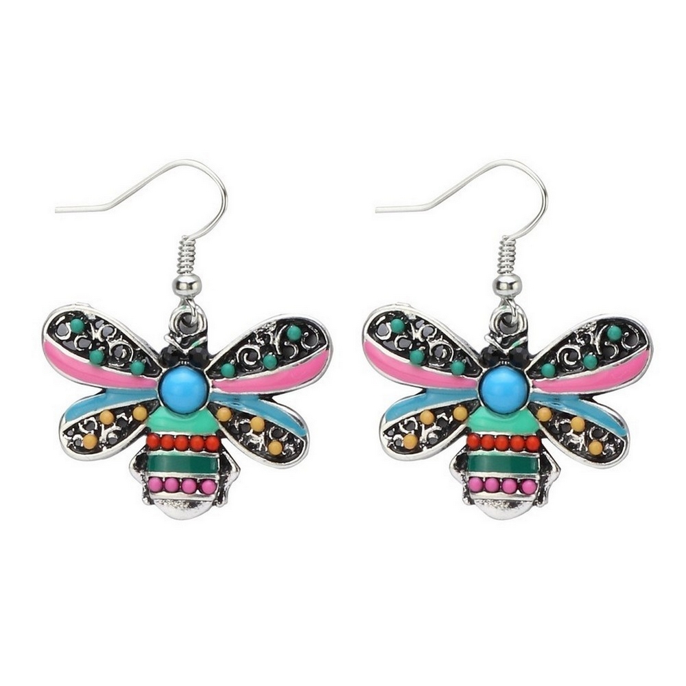 Drop Earring Bee Made With Enamel & Crystal Glass