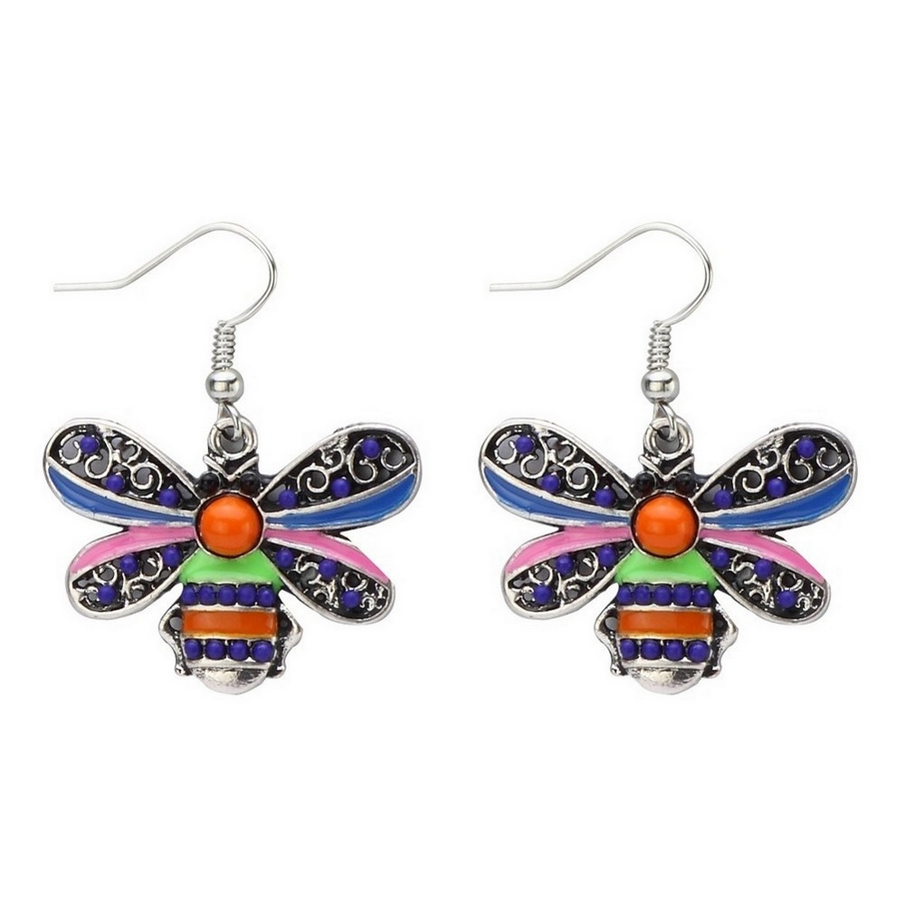 Drop Earring Bee Made With Enamel & Crystal Glass