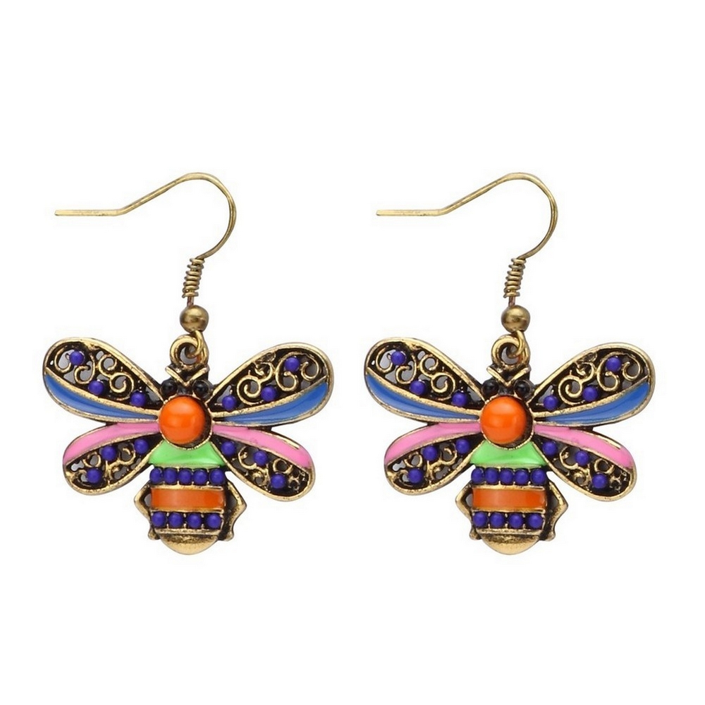 Drop Earring Bee Made With Enamel & Crystal Glass