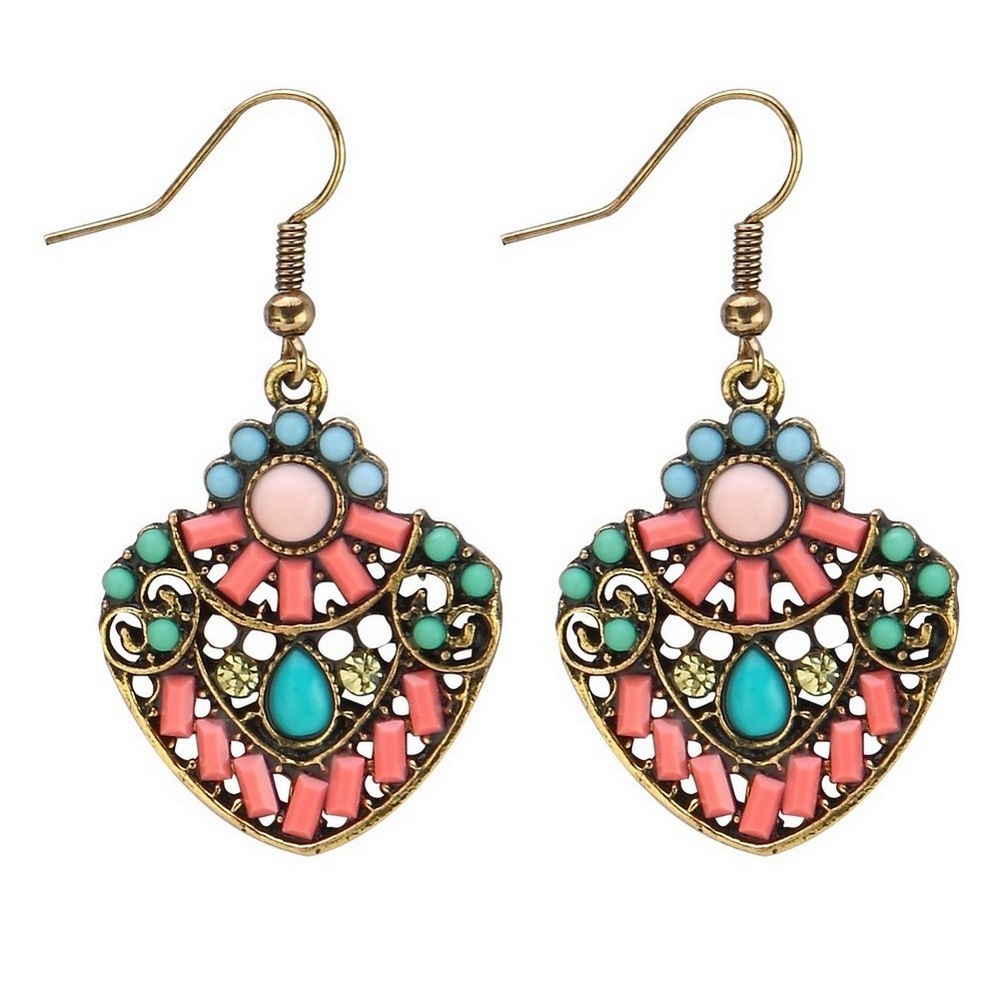 Be the first to review “Drop earring enamel embellished shield gold,turquoise & light orange”