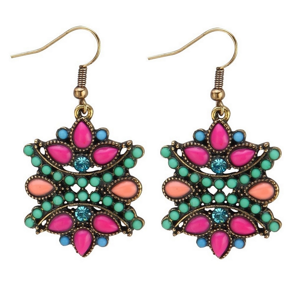 Be the first to review “Drop earring enamel embellished heraldic 50mm gold, turquiose & pink”