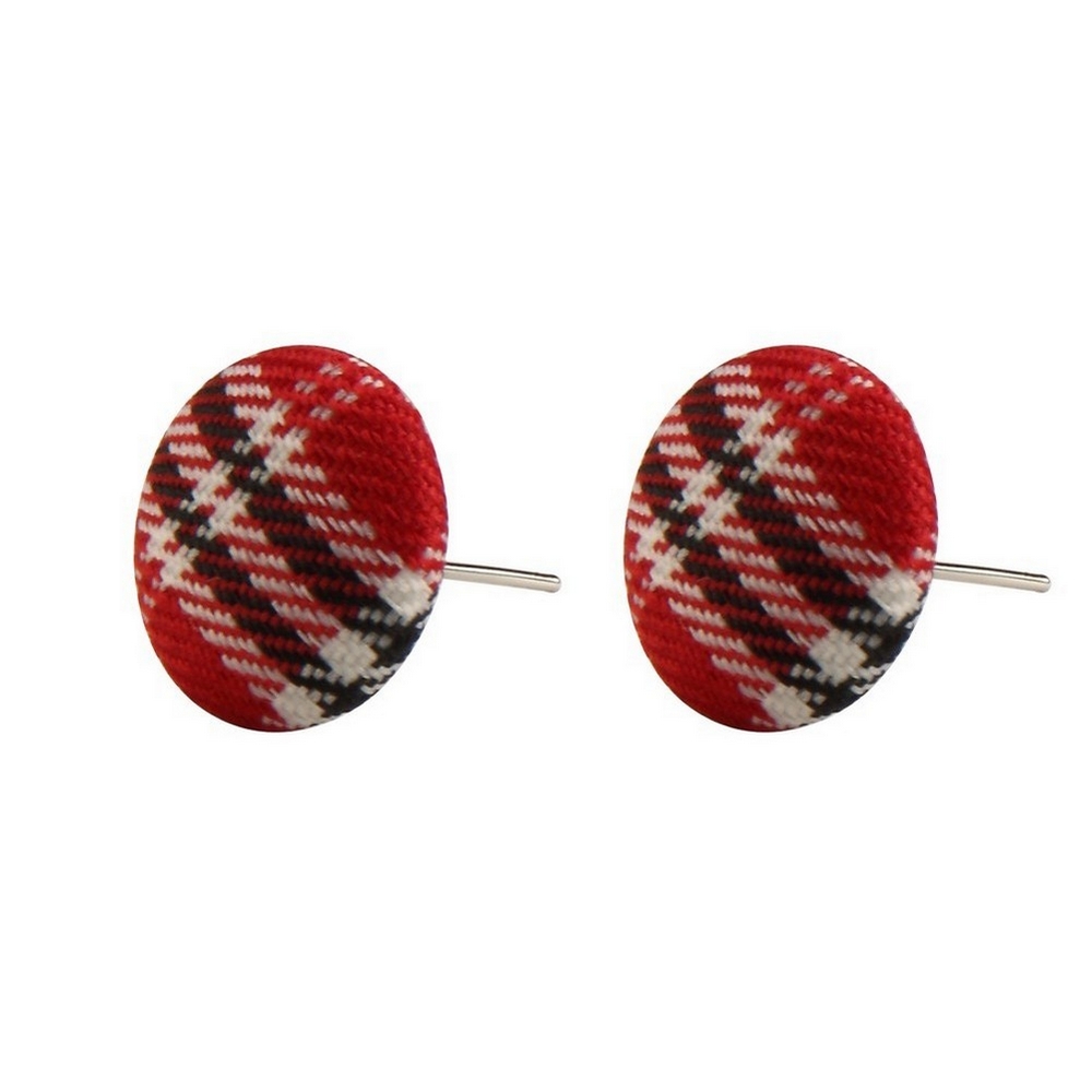 Stud earring fabric tartan cabochon red