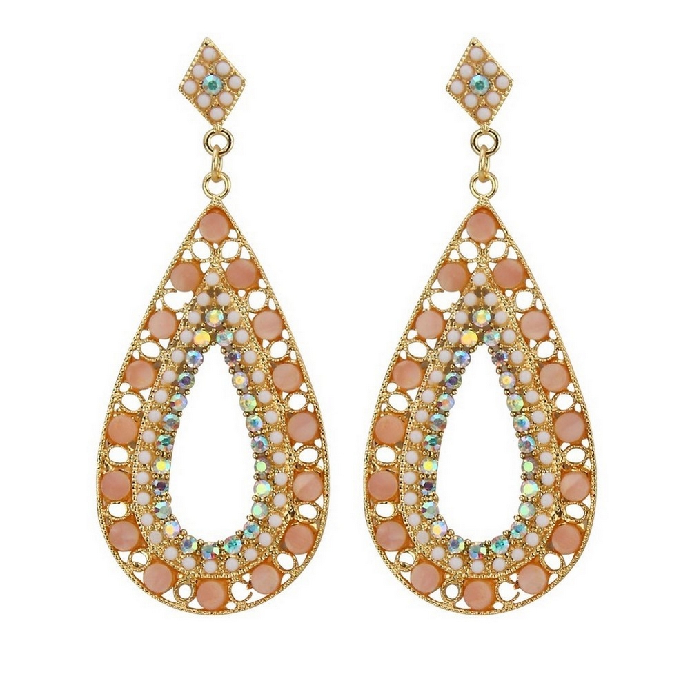 Stud & drop earring crystal glass pearl gilt frame teardrop pink