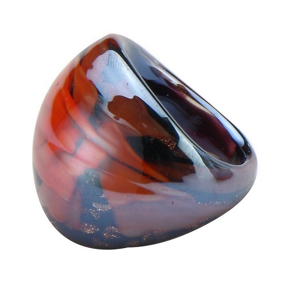 Ring Lustre Finish Domed Flower Made With Glass