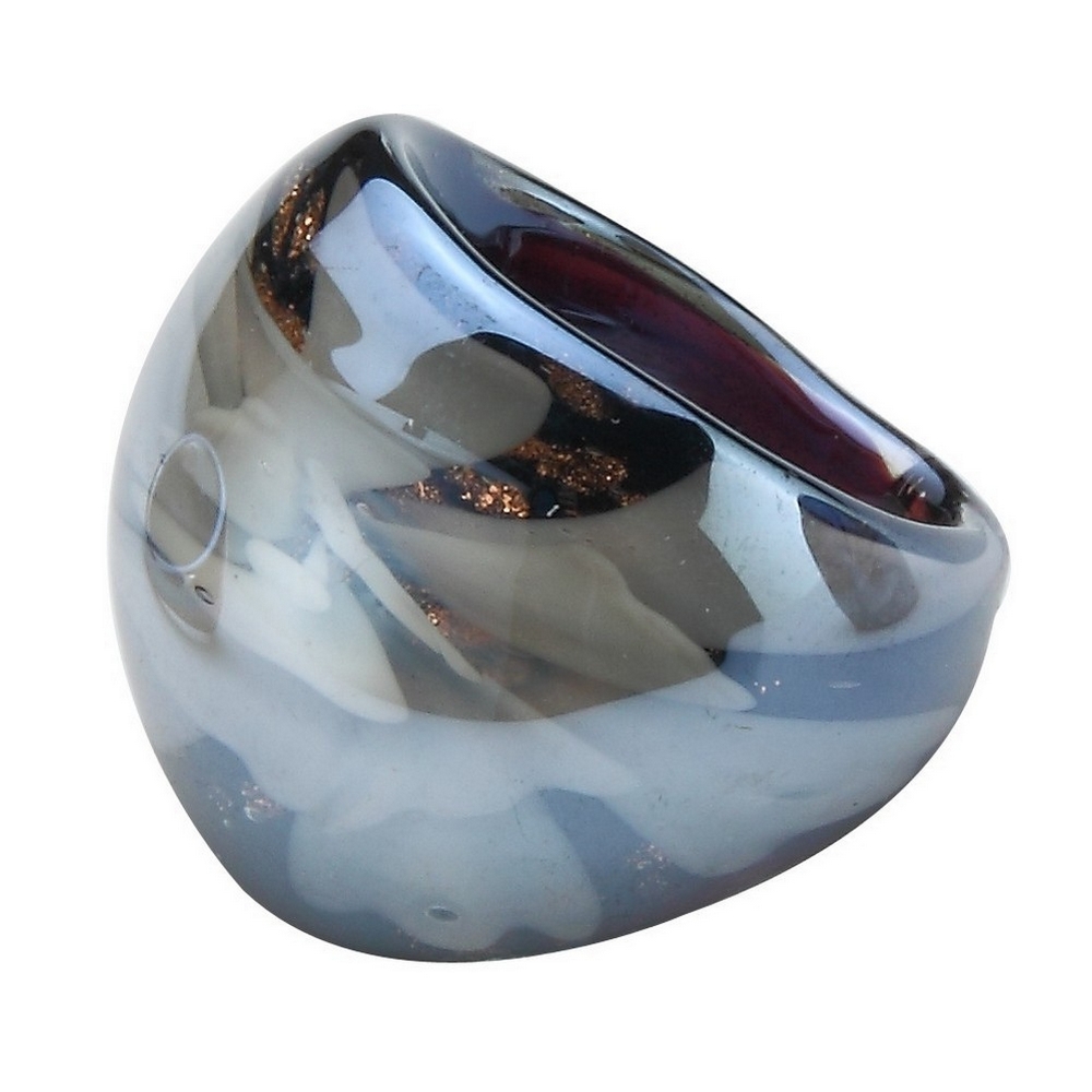 Ring Lustre Finish Domed Flower Made With Glass