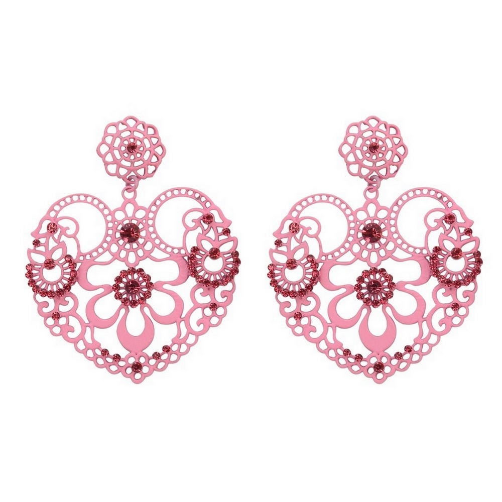 Stud & drop earring crystal glass art nouveau filigree designs pink heart