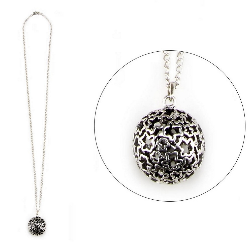 ‘Any length’ necklace with a pendant etched floral sphere