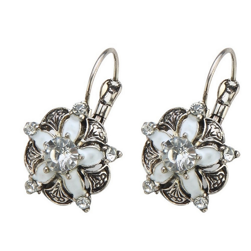 Be the first to review “Drop earring crystal glass vintage enamel white flower”