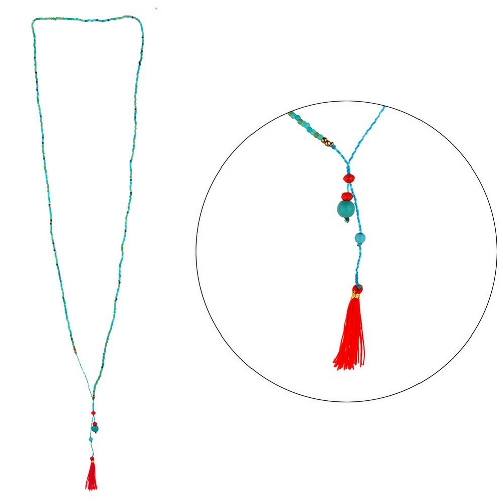 Be the first to review “Necklace Y with a pendant string glass japanese delicate bead with tassel red”