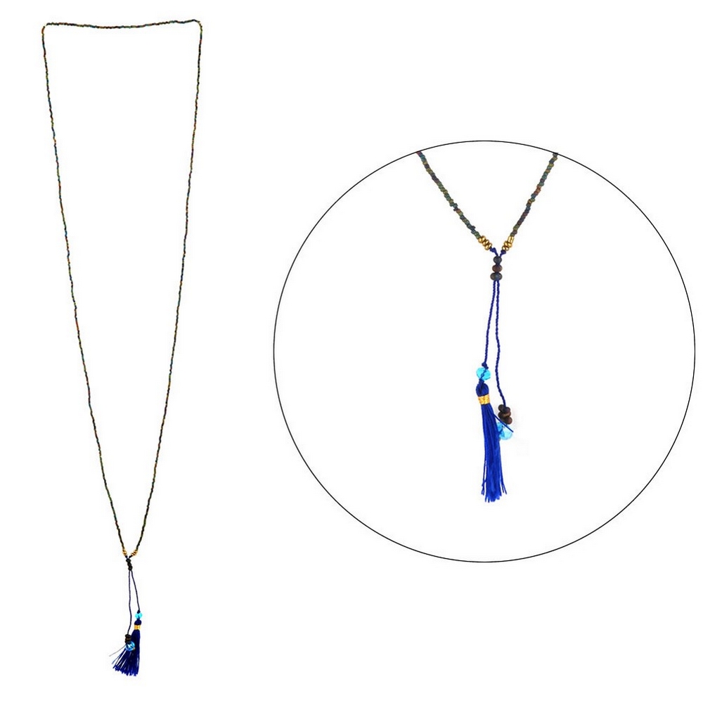 Be the first to review “Necklace Y with a pendant string glass japanese delicate bead with tassel dark blue”