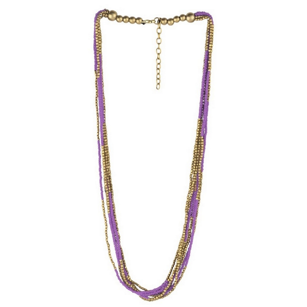 With just a hint of the exotic, this multi-strand bead string necklace will add that extra something to your look. Whether going for a classic feel or more artisan, this will add richness to your outfit. Handmade made with thousands of tiny glass and brass beads, this is a lovely organic looking item. Compliment a simple or elaborate look, either way, this will look terrific.