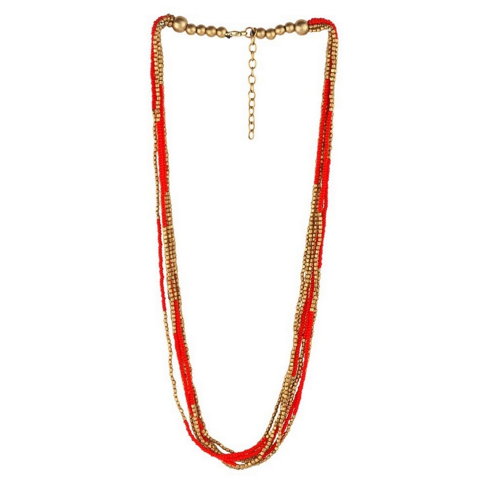 Bead string necklace glass bead 10 strands red
