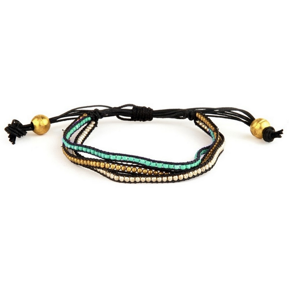 Bracelet 3 Strand Friendship Made With Cord & Glass