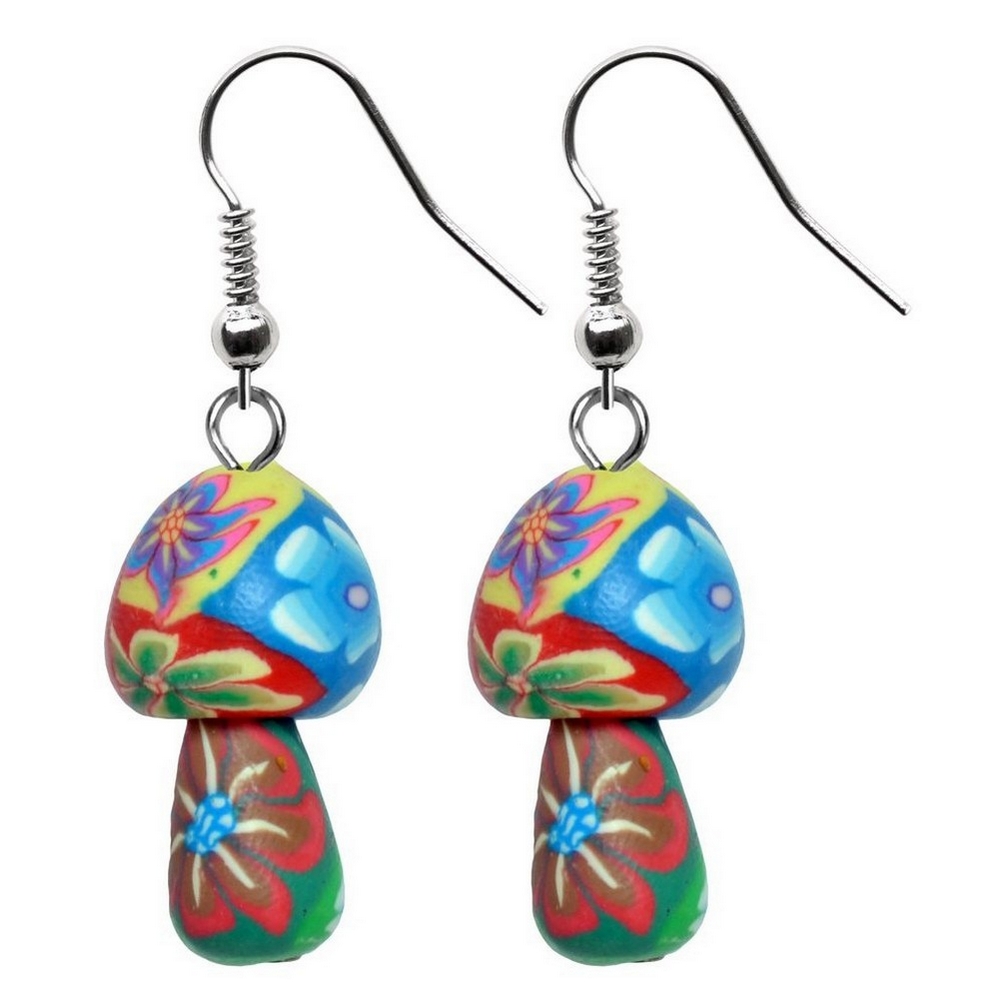 Drop earring polymer clay mushroom