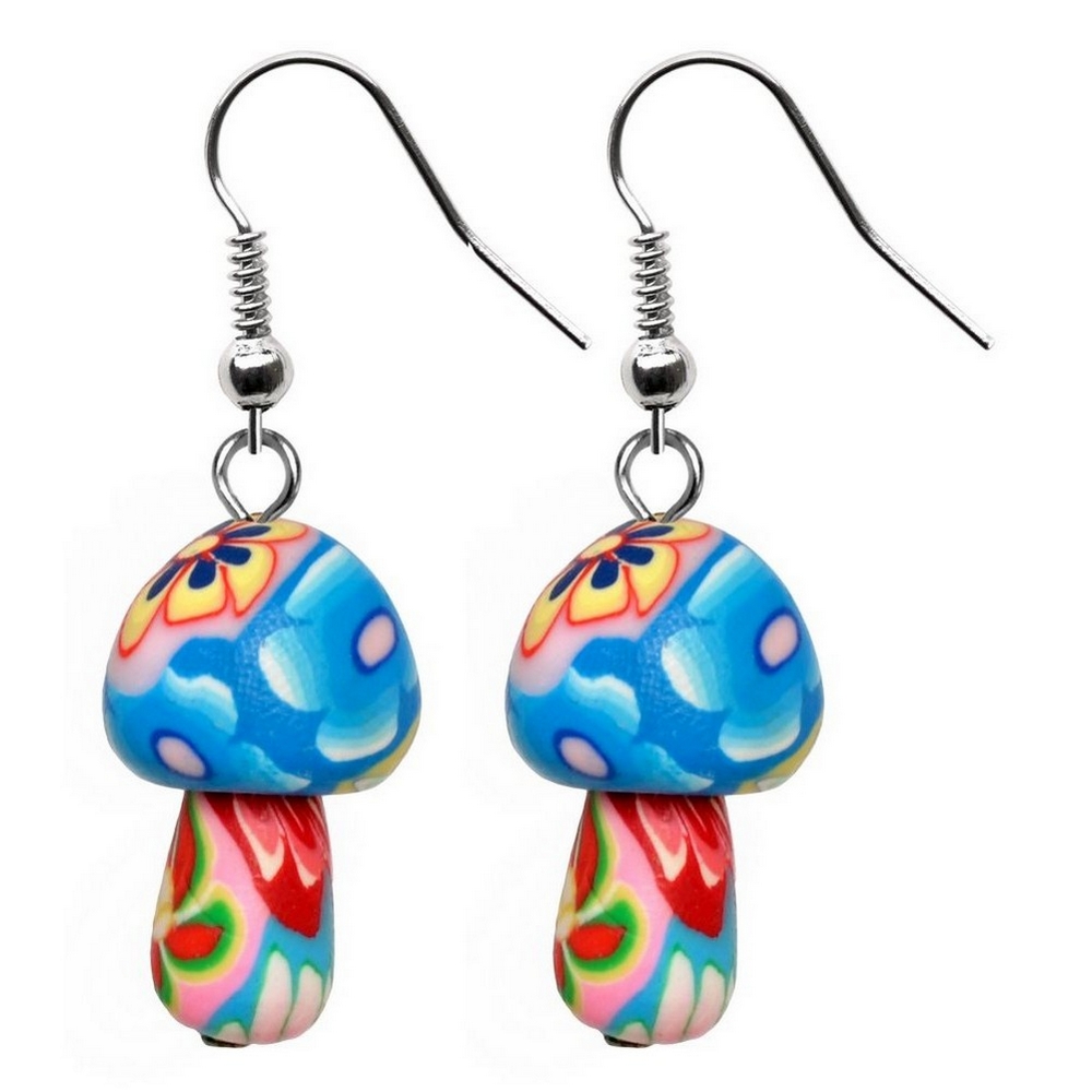 Drop earring polymer clay mushroom