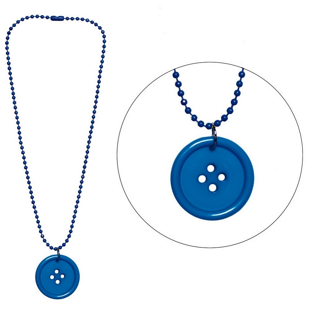 Necklace with a pendant resin button on a ball chain blue