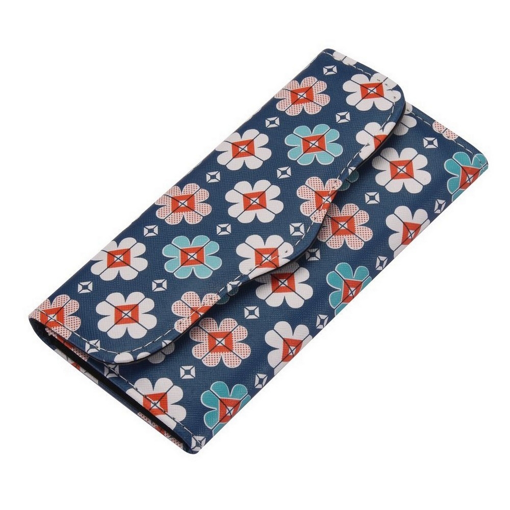 Folding wallet retro geometric flower print dark blue