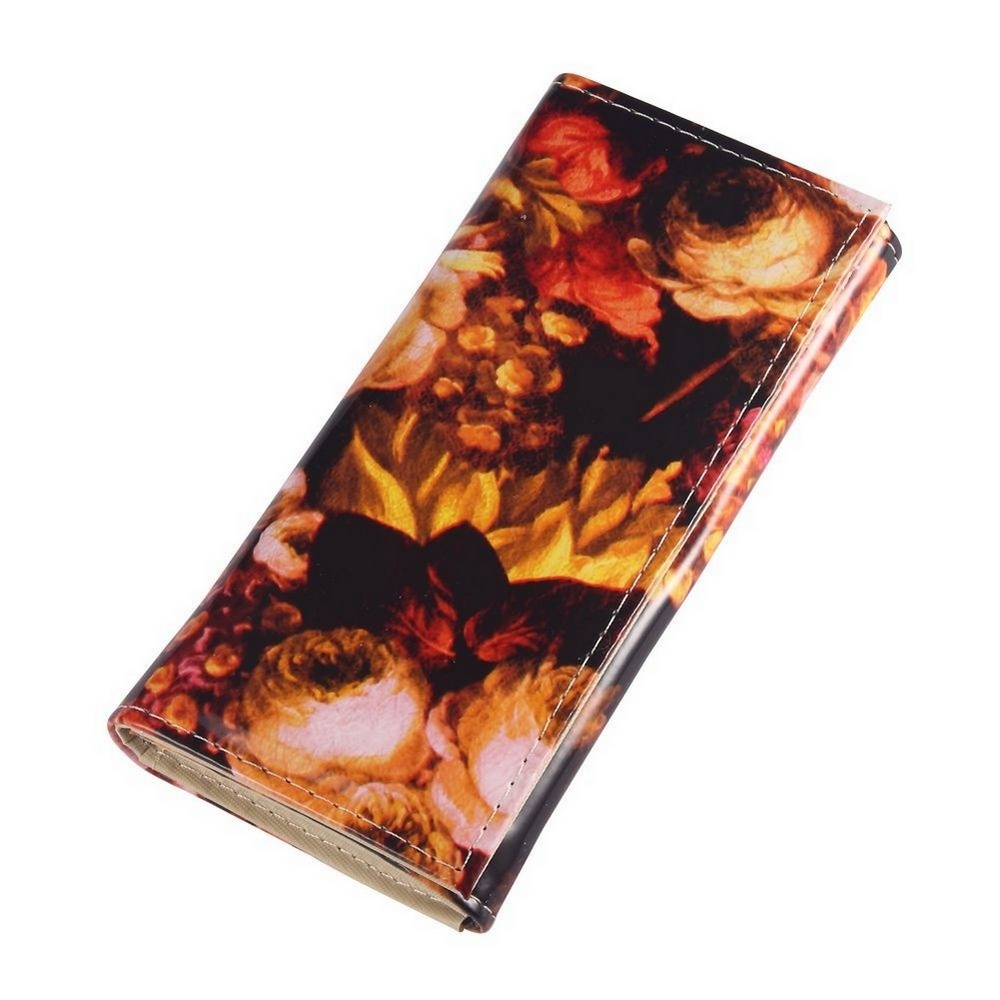 Folding wallet gloss victoriana flower black with orange