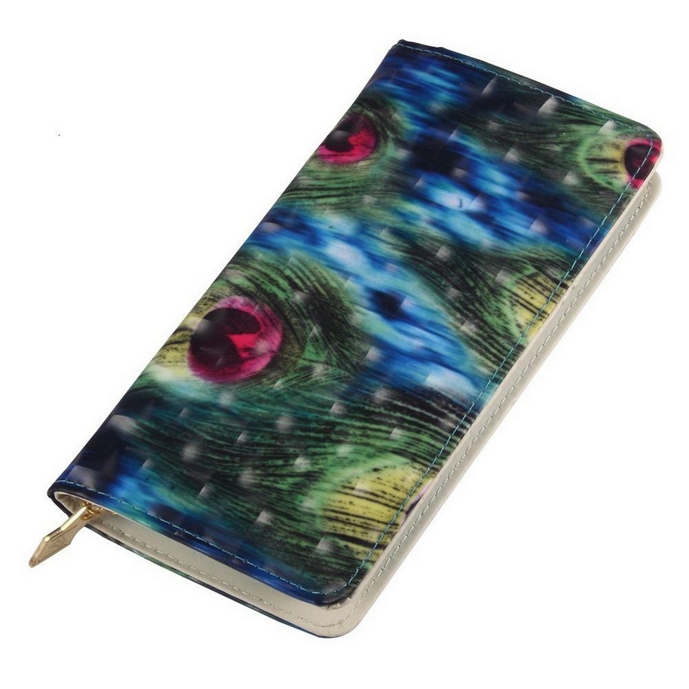 A beautifully decorative optic effect zip wallet, this fabulous peacock pattern is a real joy – Its jewel colours evoking exotic journeys and wild nights. This stunning wallet is an excellent addition to your accessory collection, it will create a talking point wherever you venture!