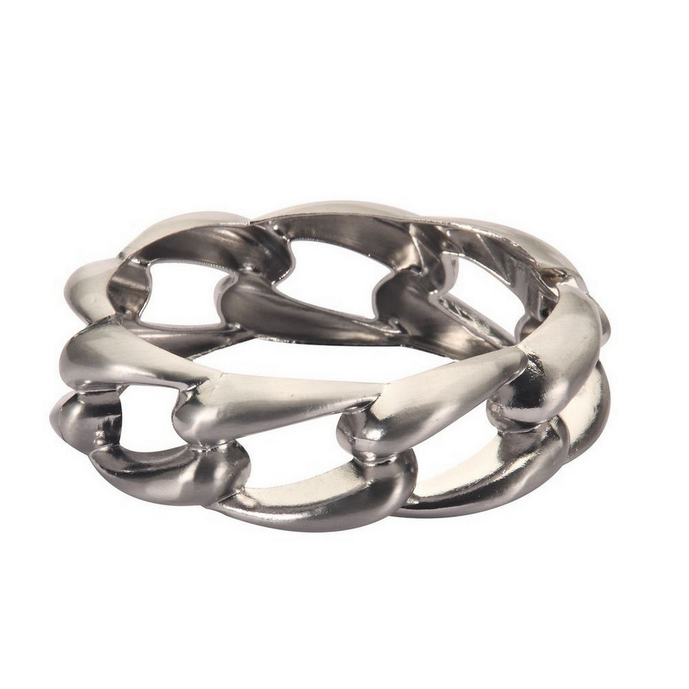 A stylish chain effect bangle that you will value for years. Subtly suggestive, it will work your look in gallery or night-club. The steely glint of zinc alloy emphasises the cool design concept. Look sharp, stay cool and shine on!