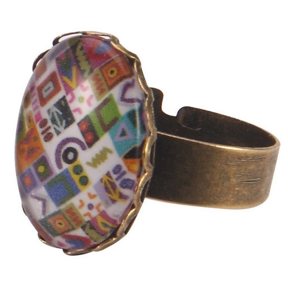 Ring illustrated miniatures white with geometric shapes