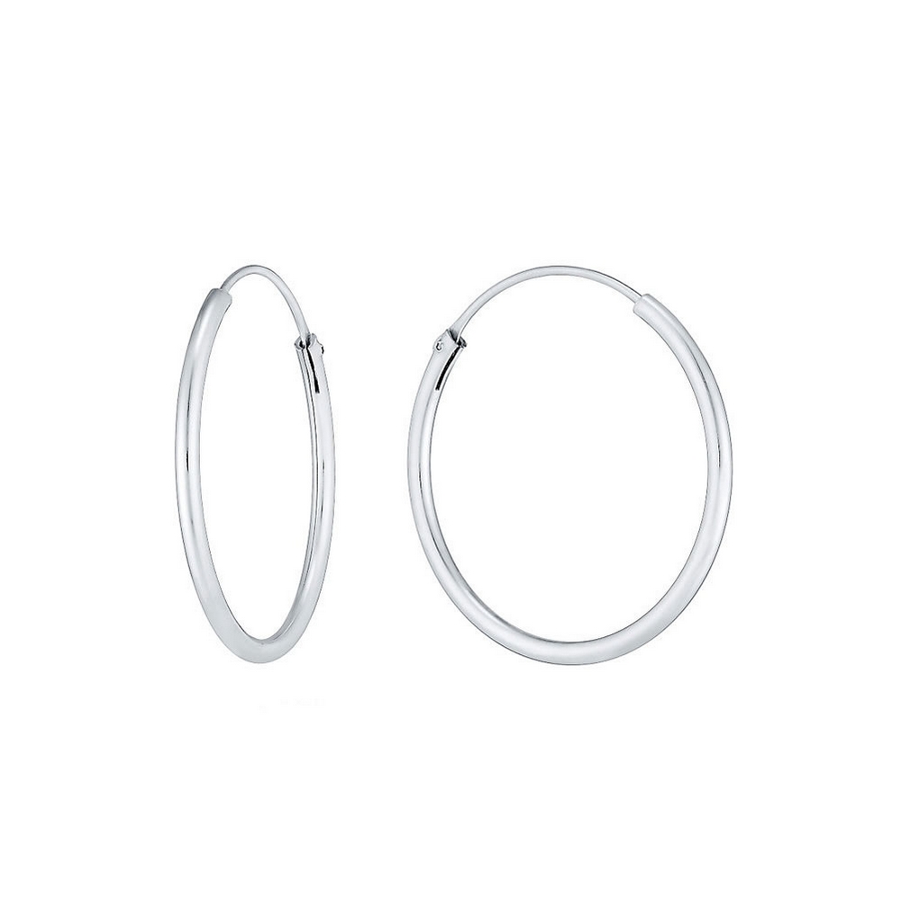 This is a great quality, well finished, hinged, hoop earring. A classic earring in a classic and popular size. It is mostly used on the lobule. Looks fabulous as part of a graduated series of hoops. Wherever and however you wear it, it will look good.