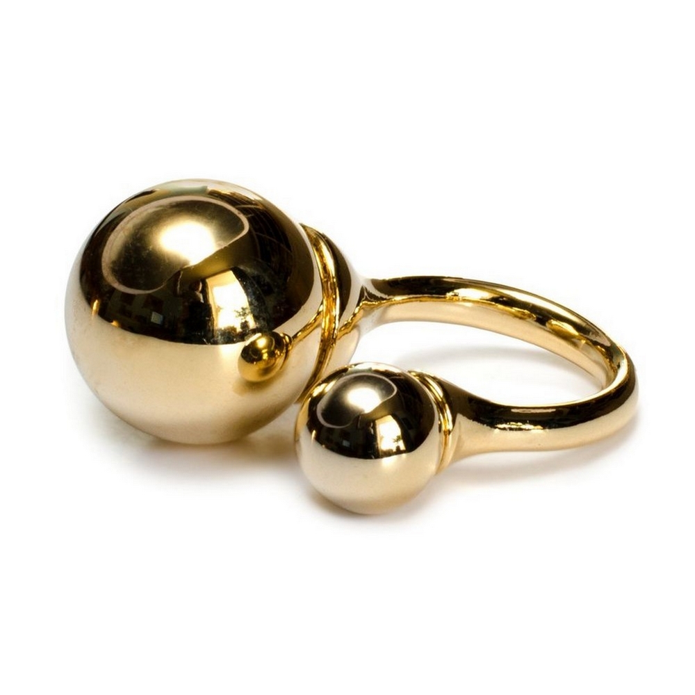 Signifier of cool and arty, this shiny spere ring spells ‘on trend’. Deceptively simple looking item but fabulously spophisticated in stunning reflective metal, this is an artwork in itself. A flattering contemporary design and new classsic!