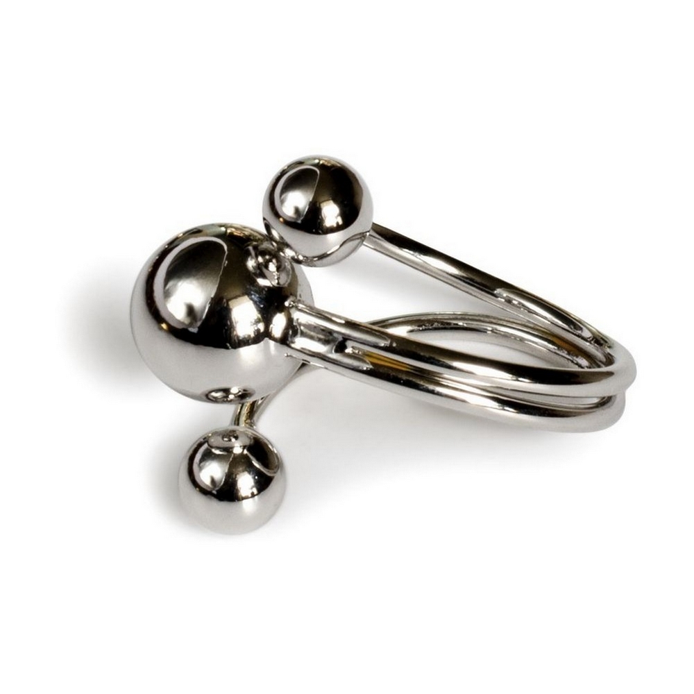 This clever and stylish triple spere ring really needs to be seen to be appreciated. Skillfully made to fully reflect the beauty of the material and reflect the light around you, this item will not fail to impress. A contemporary piece of designer steel item for the truly discerning customer. Contemporary design at an affordable price.