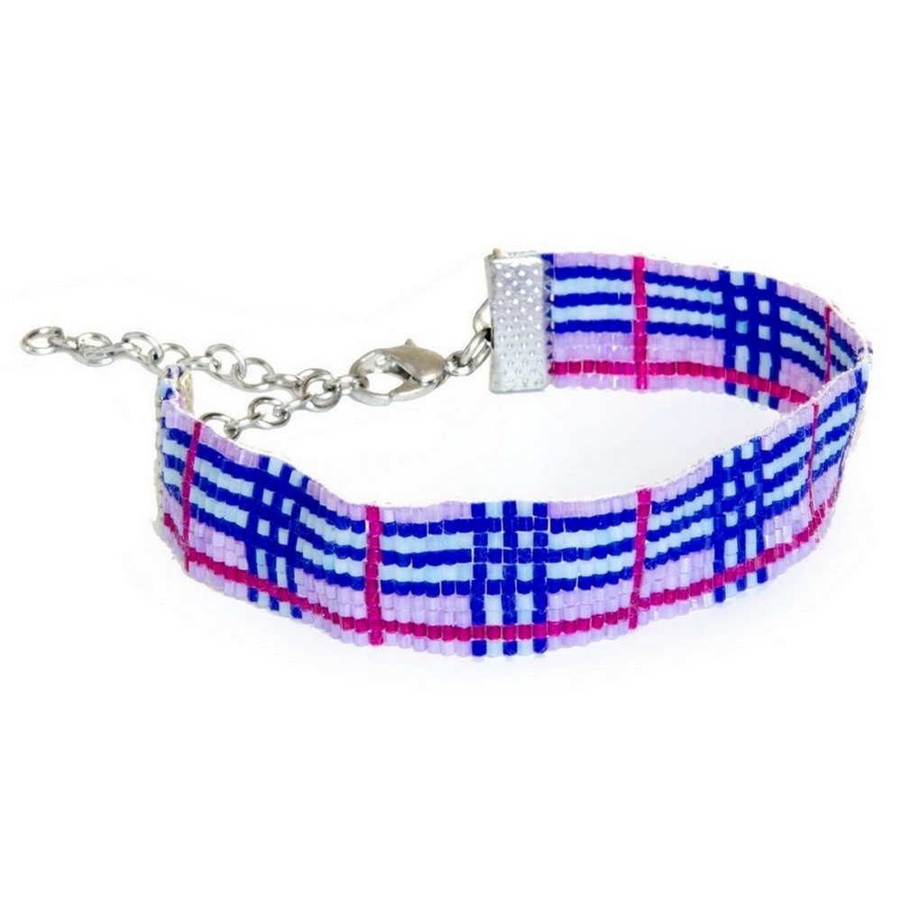 Be the first to review “Bracelet glass tartan with Miyuki beads red blues”