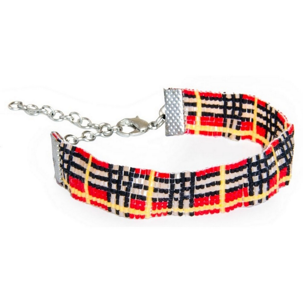 Be the first to review “Bracelet glass tartan with Miyuki beads orange black white”