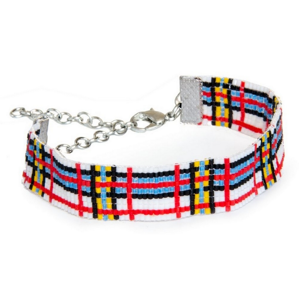 Be the first to review “Bracelet glass tartan with Miyuki beads blue orange white black”