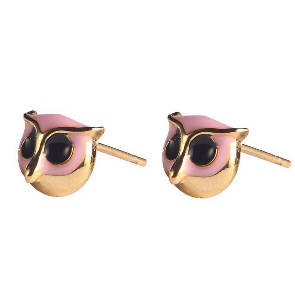 Stud earring enamel owl pink gold head