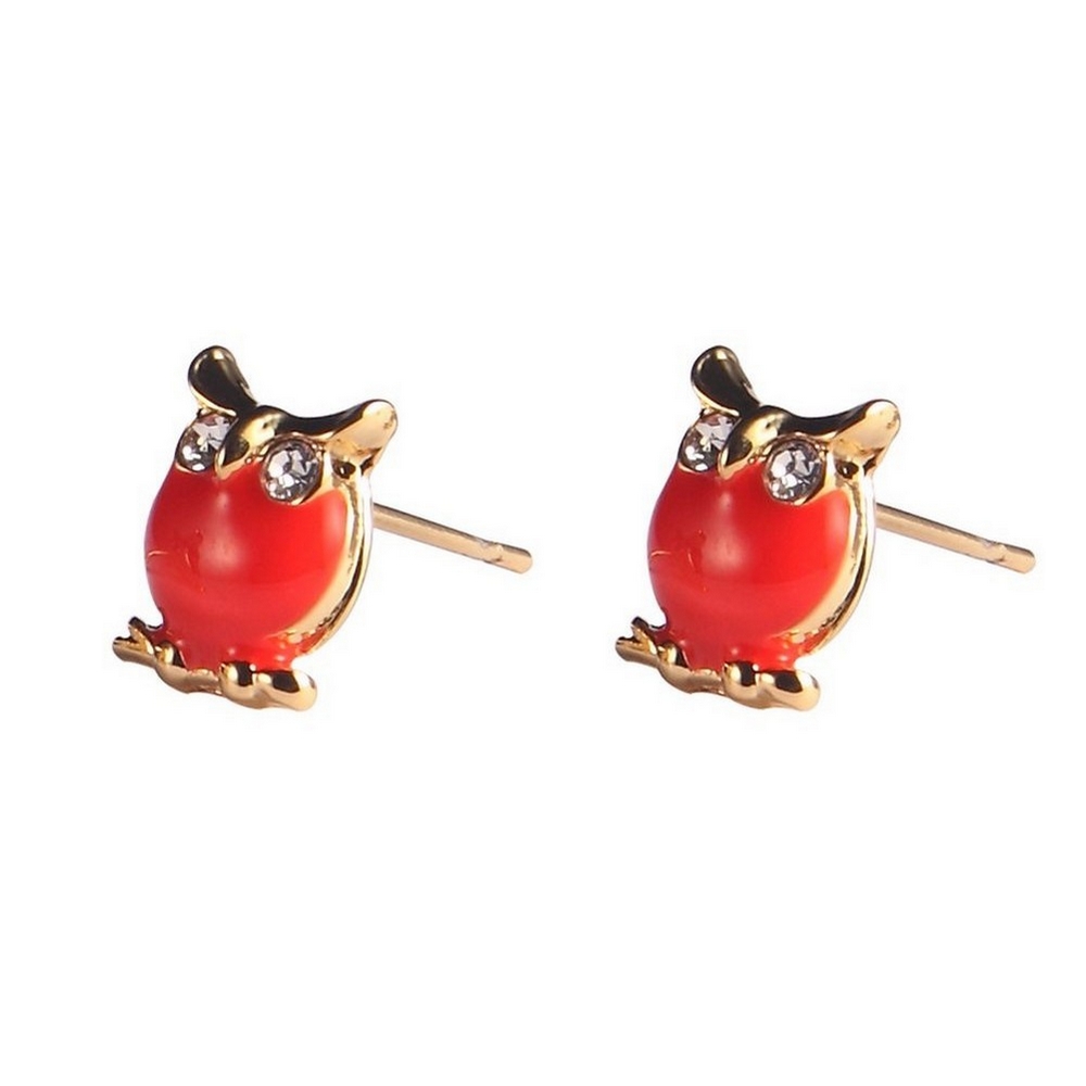 Stud earring enamel owl red gold